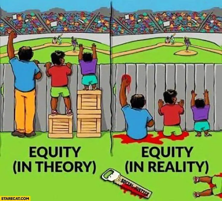 Equity puts sameness of outcome ahead of excellence, performance and success because equity is based on a lie that can only be achieved through social engineering.