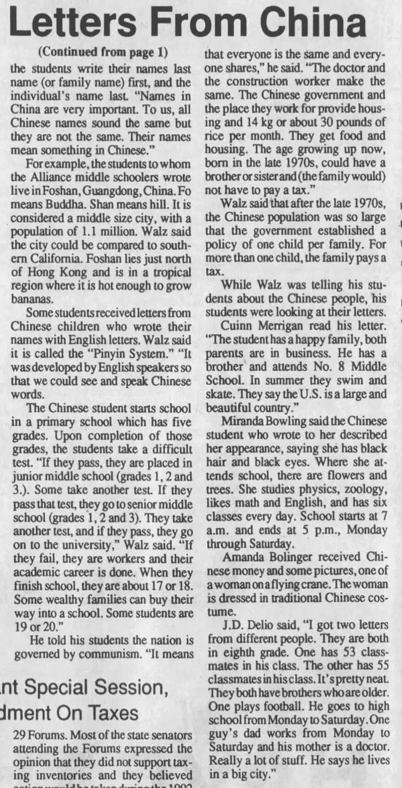 Walz stated the above to his students during a lesson on China’s communist system in November 1991.