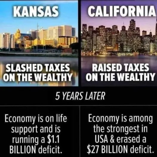 Ummmmmmmmmmmm, Californians have broken the gates down in their mass exodus out of the state.Gov. Sam Brownback was it who slashed taxes? Republicans and their fantasies do not belong in government.