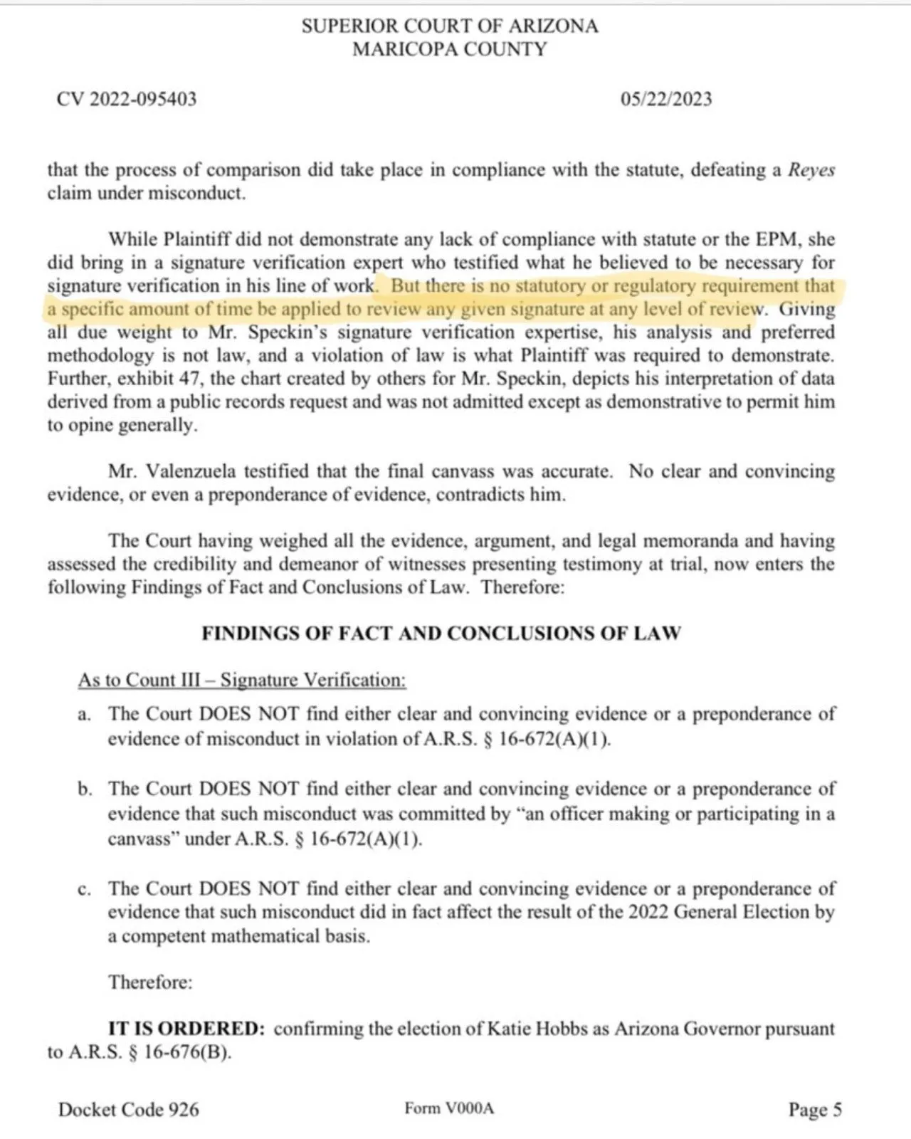 So despite showing video of the sham signature verification, this judge says there is no law that explicitly tells us that you have to take more than 2 seconds to verify a signature.
