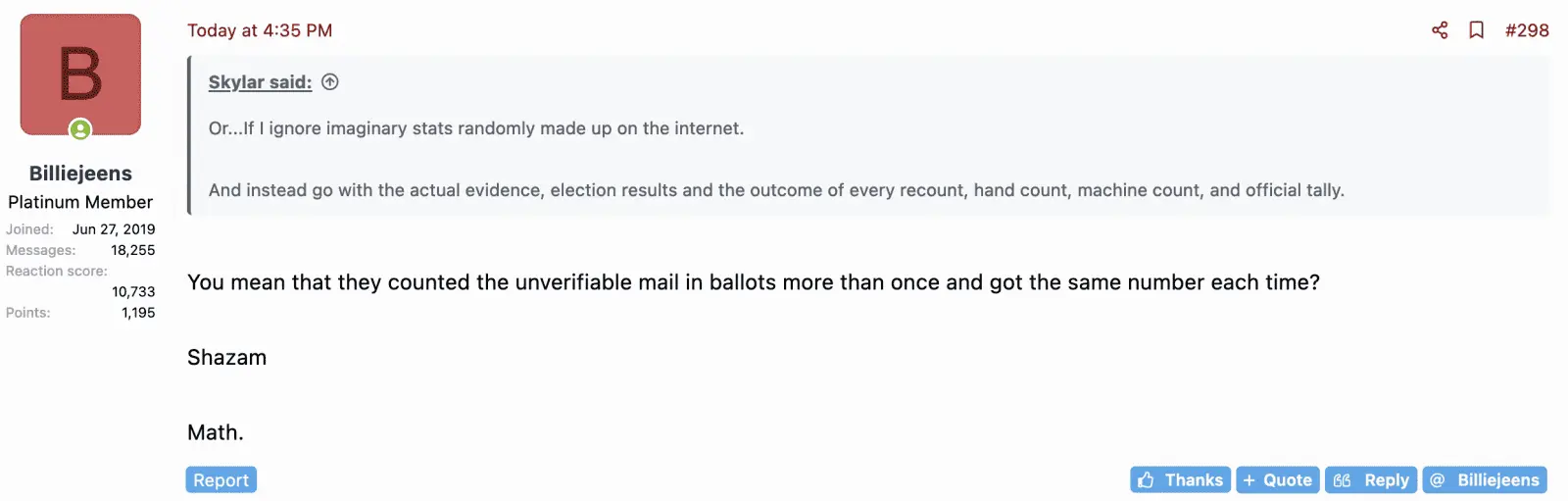 Translation: clean audit would blow doors off 2020, 2022.The obligation is on YOU to prove your imagination. Not on Hobbs or anyone else to disprove whatever you make up.