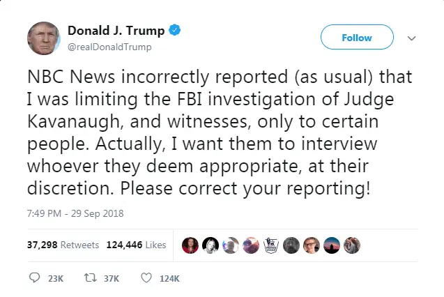 Limits to Kavanaugh investigation have not changed, despite Trump's comments