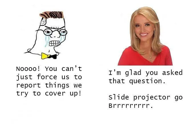 Yeah just so you know, photoshopping her to be like a pimp or calling her a minx isn't the way to project her as a pillar of truth or confidence. Just another ham handed right wing way of placing a woman into their little cookie cutter mold. You just think you have a shot with her and it's a bonus she's "on your side". Now, she agrees to willingly go along with this by being Trump's press secretary so I don't have much in the way of sympathy for her. She's just another Trump press secretary trying to defend the indefensible.