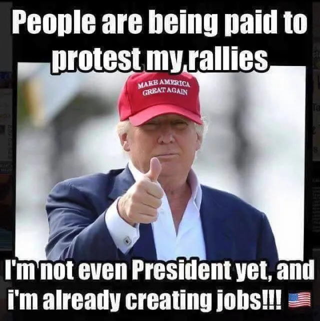 "Hey, that guy said something i dont like, lets attack a bunch of people that arent him and lets smash up cars and vandalize some shit."The Donald goes out of his way to excite and provoke people with the outrageous things he says in public.