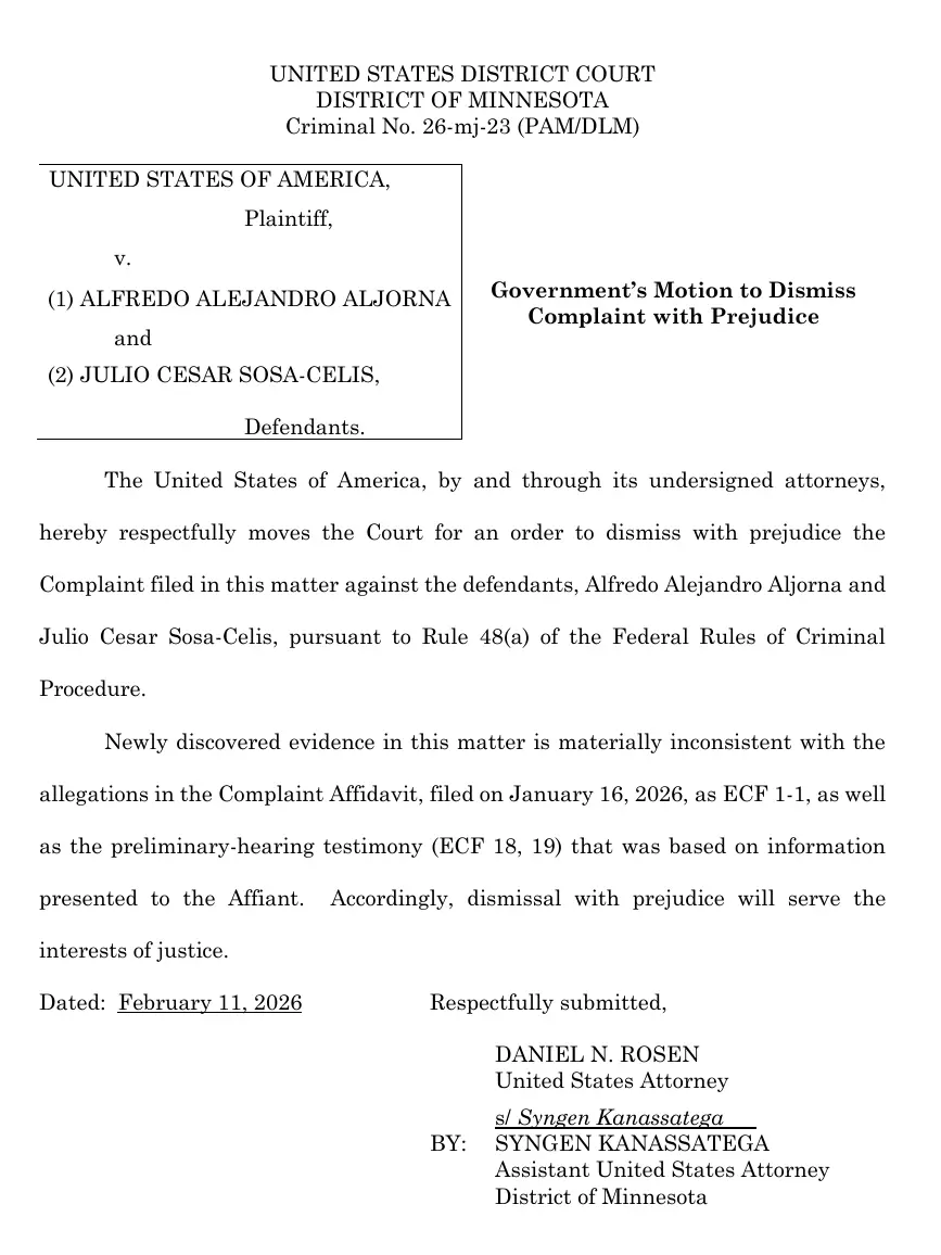 DOJ drops charges against 2 men accused of assaulting ICE officers in Minneapolis, citing new evidence "inconsistent" with complaint