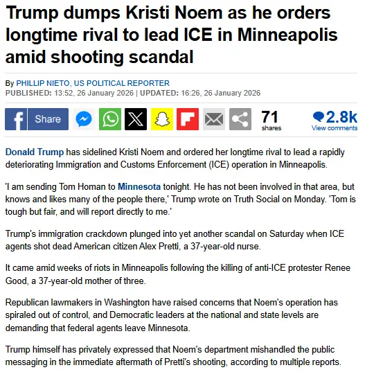 She gets no sympathy from me, this is what he always does, sacrifices his devoted fools like pawns in a chess game. She is a cabinet level individual, confirmed by congress where Homan was not and has the silly Russian title of "border czar" (and who looks like a plumber) and now has been sidelined for her loyalty.