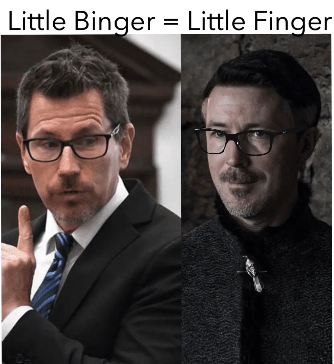 Binger is the slimy lying filthy ass Prosecutor that tried (miserably) to **** Kyle. He looks just like the slimy character Little Finger (Balish) from the Game of Thrones.