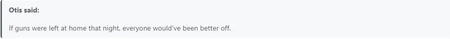 But let’s pretend that Huber had in his head that his attack on Kyle was motivated by a good faith desire to stop an active shooter—that has nothing whatever to do with either any of the criminal charges against Kyle or Kyle’s legal defense of self-defense.