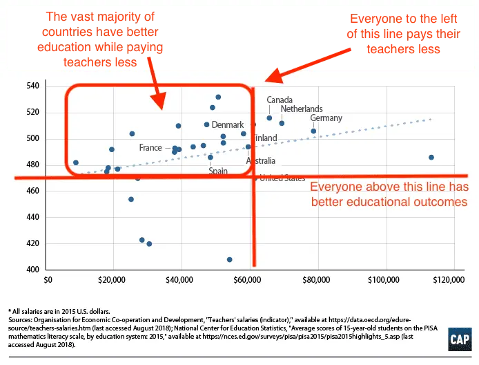 When you compare the quality of education being provided, verses the pay that teachers make... we pay more... for worse education, than the vast majority of countries all over the planet.