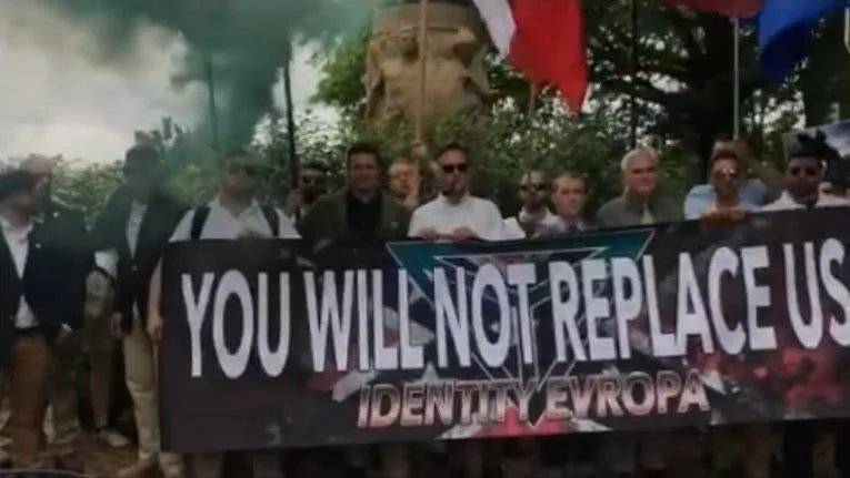 The official event was presaged by a nighttime parade in which rallygoers held tiki torches aloft while chanting, “Jews will not replace us!” and “Blood and soil,” a reference to a nationalist slogan used in Nazi Germany.