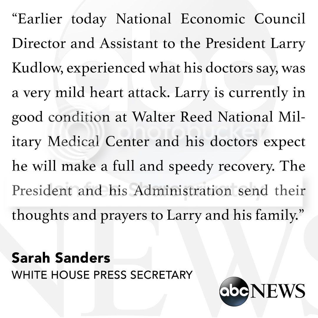 Larry Kudlow, National Economic Council director, hospitalized after suffering heart attack, Trump says