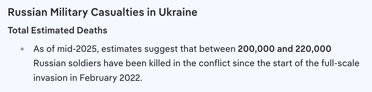Ukraine has suffered anywhere from 5-8 times more casualties. Those are the generous to moderate estimates given the situation on the ground, not the propaganda.Putin's 3-day war is going on for three long years. Not much ground os being gained. A very stupid war.
