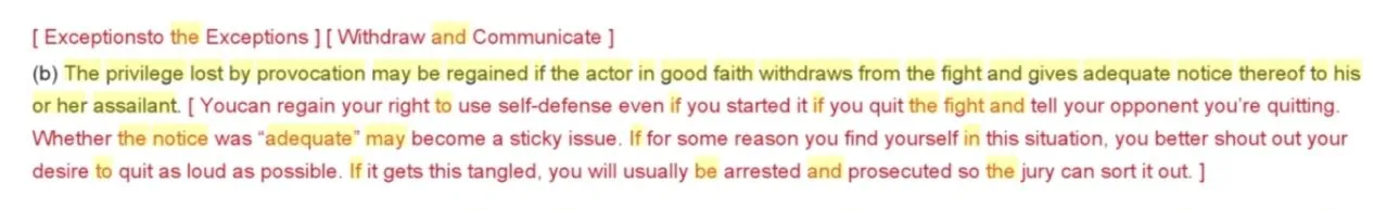 b) The privilege lost by provocation may be regained if the actor in good faith withdraws from the fight and gives adequate notice thereof to his or her assailant.