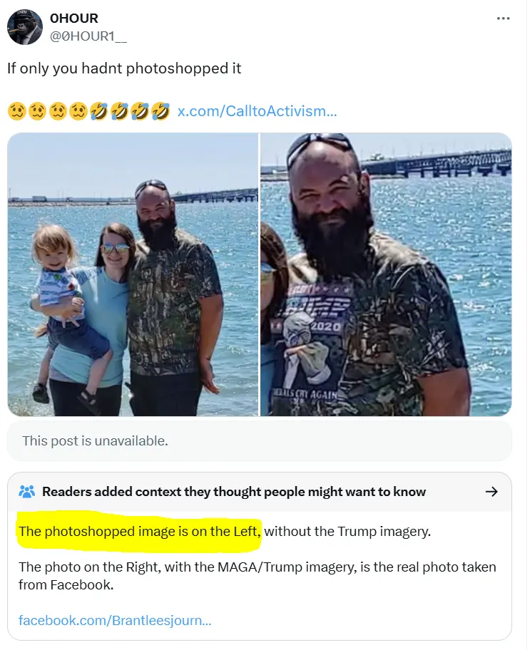 you think me a fool. I'm not.Did you click the link to the 6 year old post on Facebook that is time stamped on it? I posted it right in here as a pic so you didnt have to in post #2. You don’t have to commit to being wrong. It happens. Social media gets people all the time. That is why I looked into it. Found it myself. And posted for you.