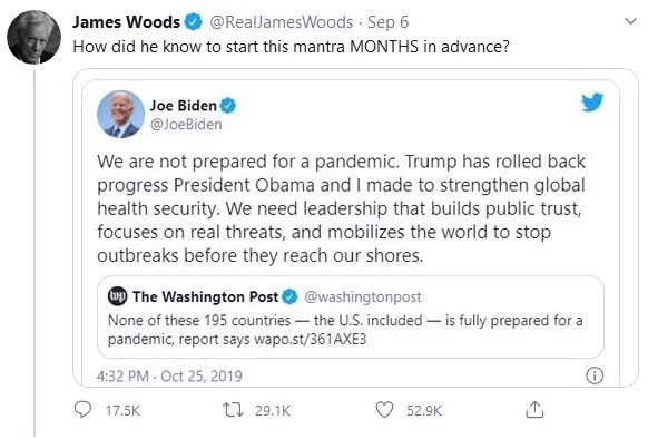 Indeed James, how did Joe know way back in October to be talking about America's preparedness for a viral outbreak?