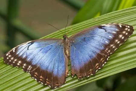 Its characteristic blue wings are extremely beautiful to look at. The wings are not really brightly colored for the female Blue Morpho butterflies; nevertheless, they still look beautiful.