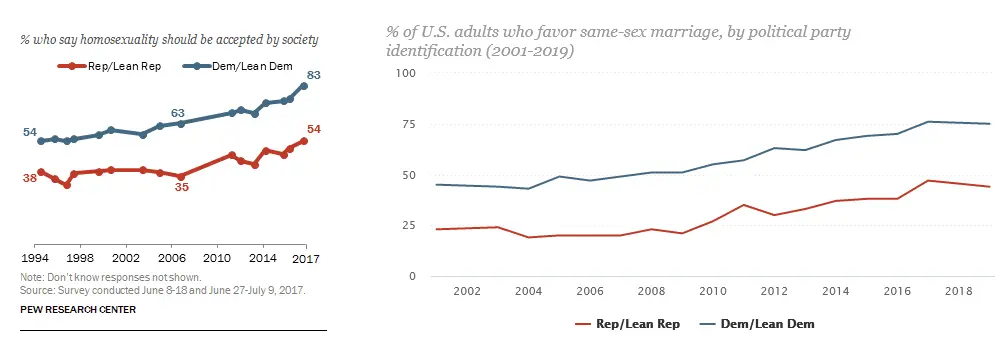 What am I missing here? Looks to me like one party is more accepting of homosexuality than the other.