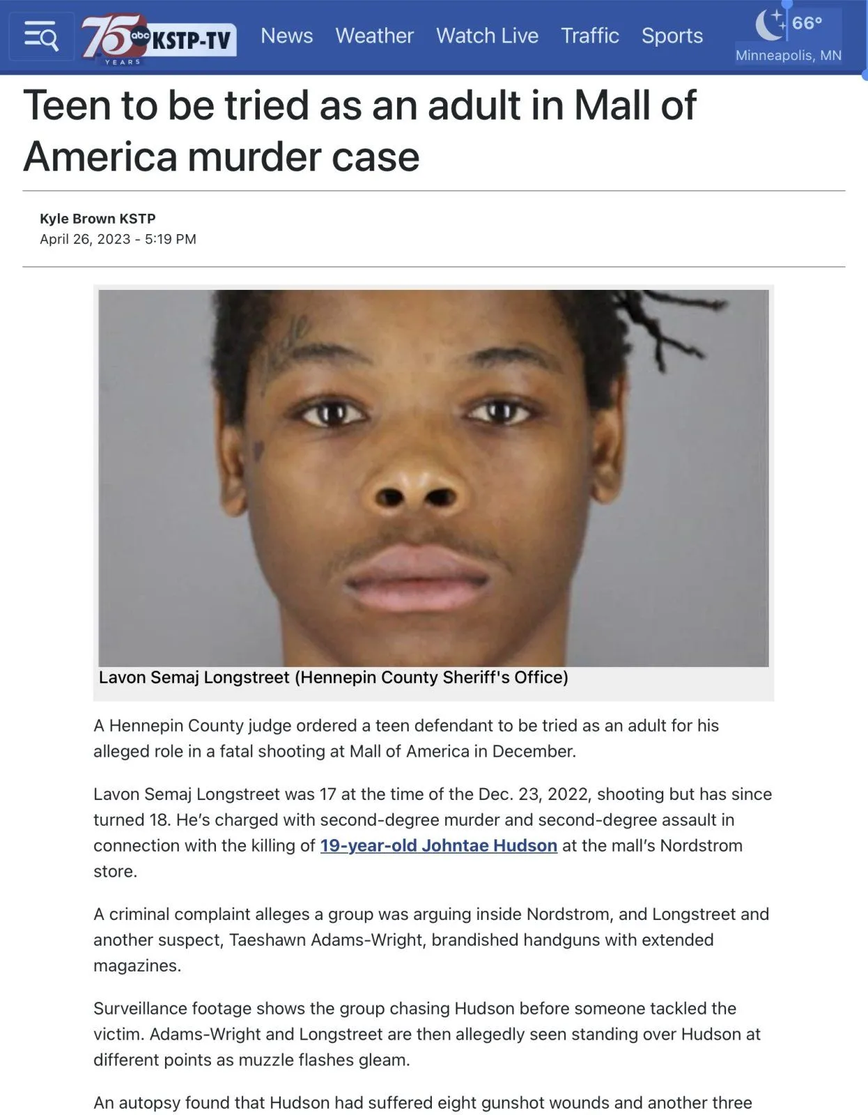 Teen to be tried as an adult in Mall of America murder case