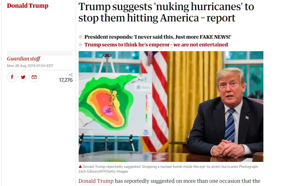 Sounds like something Trump would do. He wanted to nuke a hurricane, didn't he?