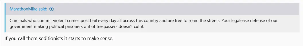 So, rather than take it to teh SCOTUS as unconstitutional, (as the sedition acts have never been challenged,) you would resort to Jan. 6th type behavior?We would calmly refer to that as a revolution. Don't mind our poll numbers, nor the Bernie/Alexandria turnouts. Count our pointed little heads on 4/5/25.