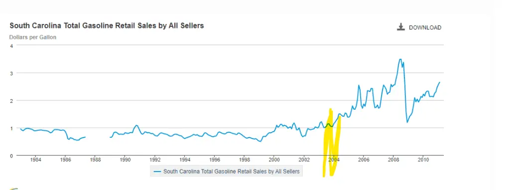 And that graph backs up that you lied, gas price were never close to a buck after 2004.