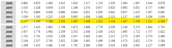 Here is the data table by month. They went up in 2004 and were still up in 2008