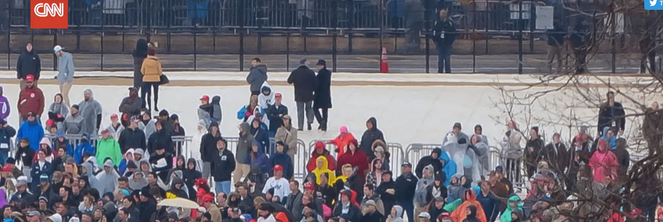 The only meaningful comparison is to have overhead shots of the entire mall at the exact moment that Trump and Obama took the oath. Anything else is meaningless and stupid. I'd imagine more people attended Obama's first inauguration because he was the first President who as not 100% white. Obama was only half white.