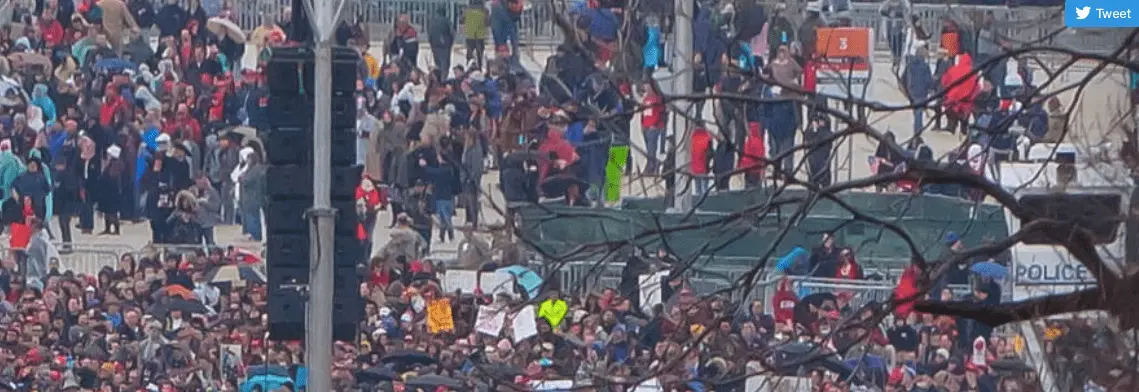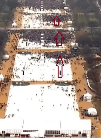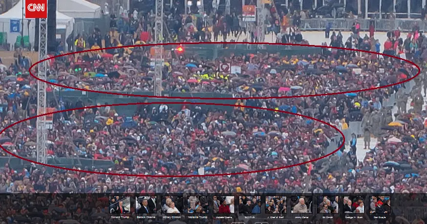 Here's Trump's. You clearly see lots of people in both, but behind you see white space. But there's LESS white space here than in this picture