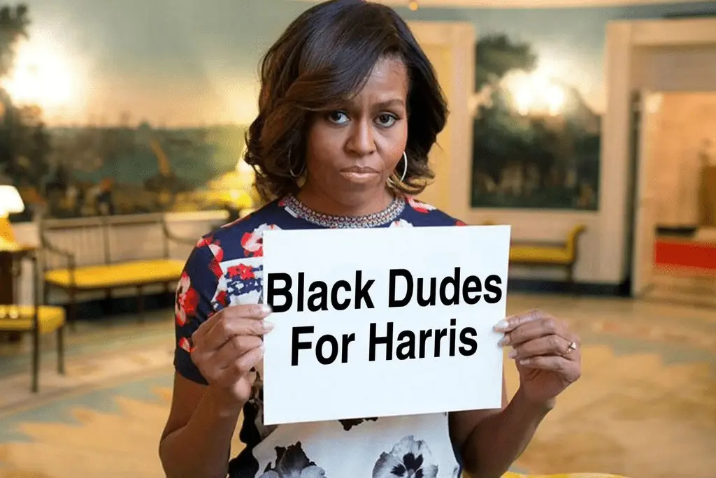 “White Dudes for Harris.” Trump doesn’t own the votes of white men or speak for them.