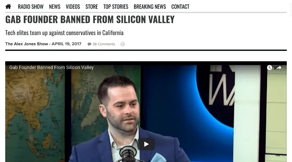 Gab Founder Banned From Silicon Valley