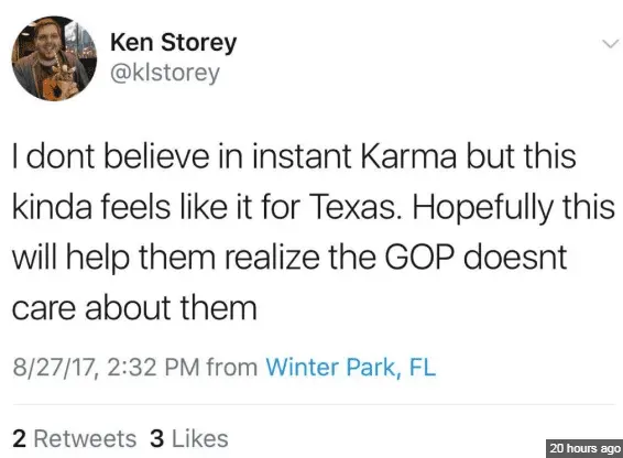 Texas does not deserve Harvey because they voted for Trump