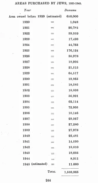 Secondly, we know exactly how much land was bought by the Jews and when:
