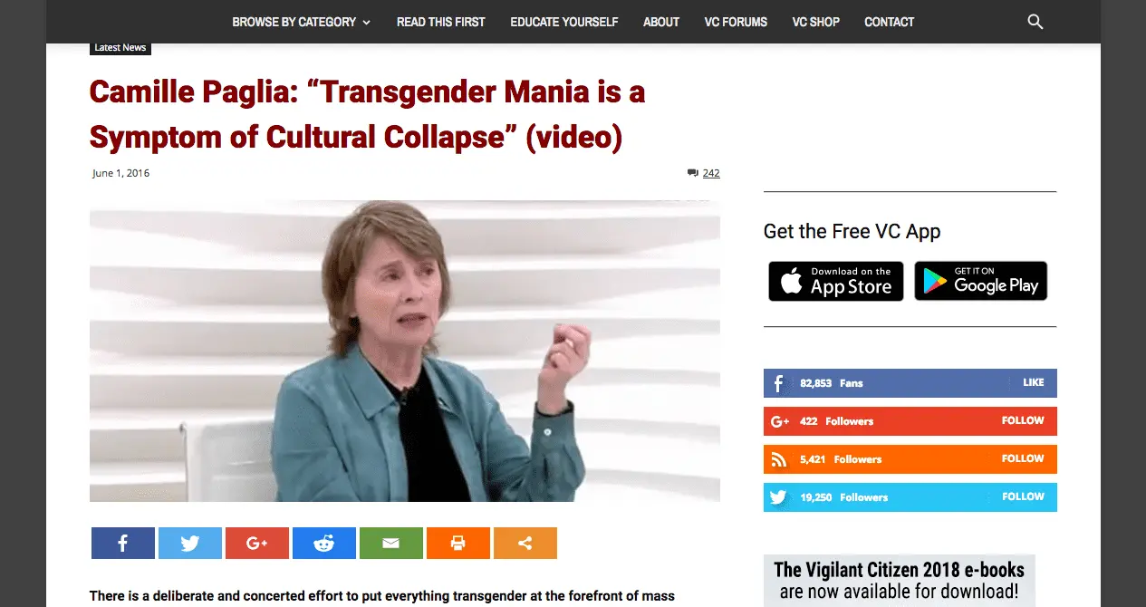 Camille Paglia: "Transgender Mania is a Symptom of Cultural Collapse" (video) - The Vigilant Citizen