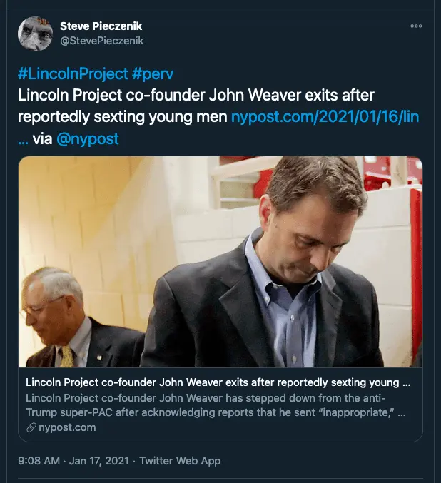 Hmm, funny how all the liberals on this board always posting about how the Lincoln Project are the “real” Republicans haven’t posted anything about this yet: