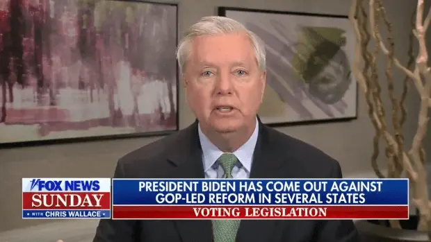 Republican Lindsey Graham slammed the president as "sick" for "playing the race card in such a hypocritical way" after Biden's public condemnation of the state's controversial changes to local election policies.