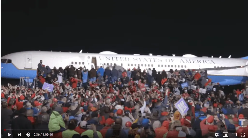 Some Screen Shots first, they are literally mobbing The Donald getting out of Air Force One:
