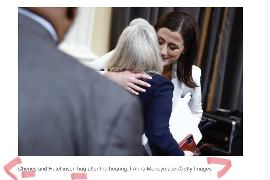Yes that's the one who saw nothing but heard about it from somebody.This is Cheney hugging the ‘star witness’ in the Capitol riot hearings. It’s Mike Marcia Clark hugging Mark Fuhrman…