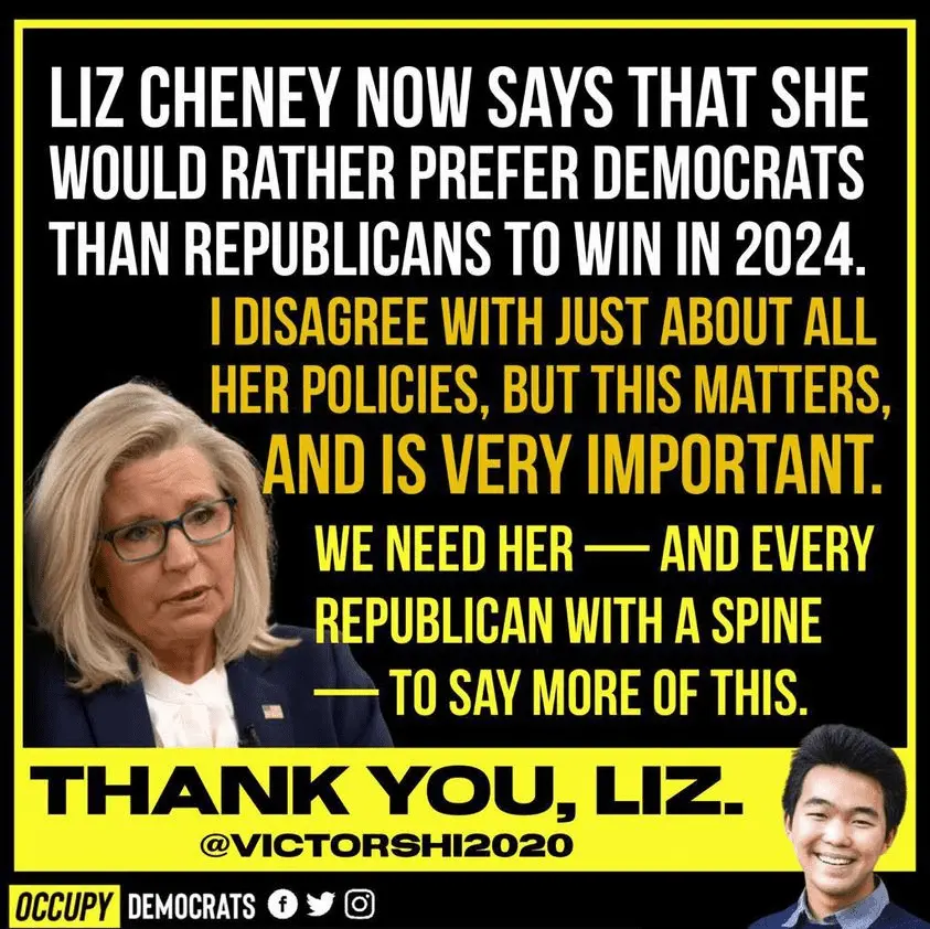 Idiotic. She knew she was gone the moment she criticized your orange God.Poor Liz. She can’t get over being rejected by the voters of Wyoming.