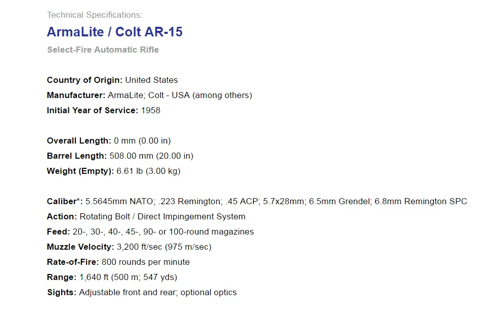 ArmaLite / Colt AR-15 Select-Fire Automatic Rifle (1958)