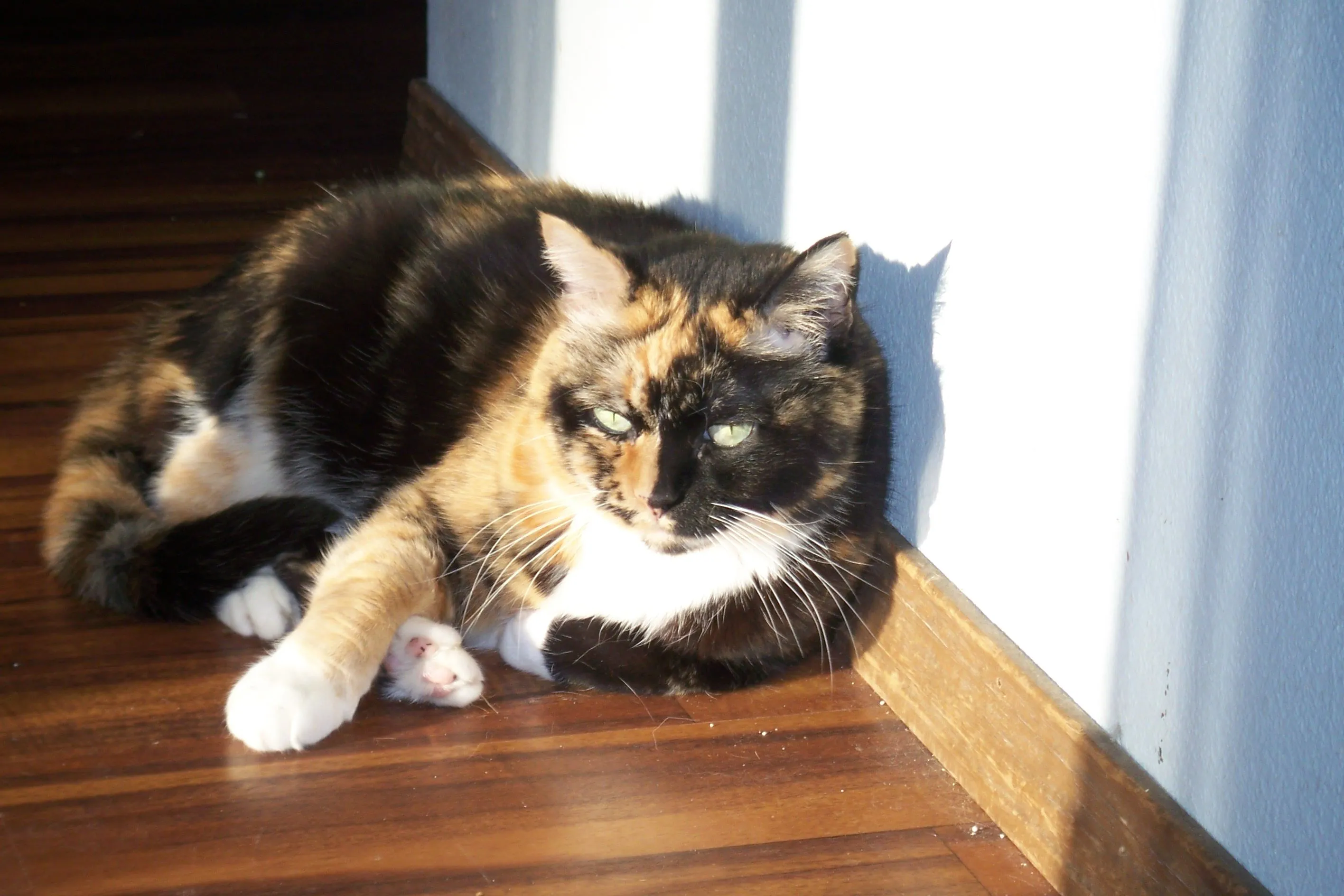 Here's my calico cat, Zoe. She doesn't have a candle or different-colored eyes, but she's still pretty cute!Great personality. Fearless.