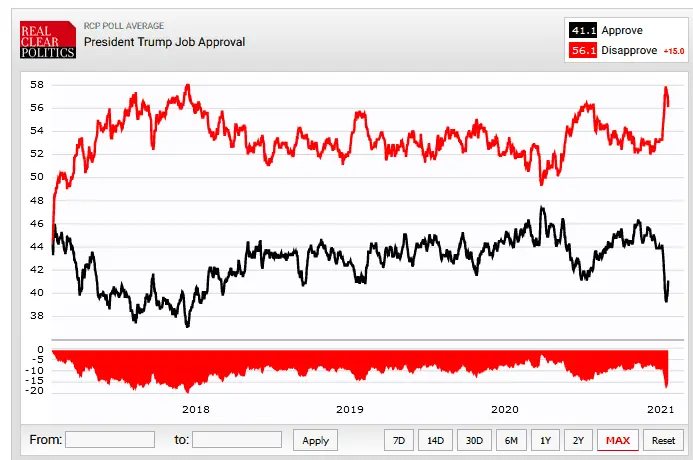 We can see Trump's approval rating started to plummet at the very end of his term when Jan 6 happened.