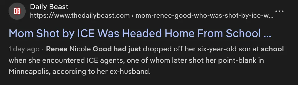 - There is no publicly known allegation that Renee Good was suspected of anything criminal.