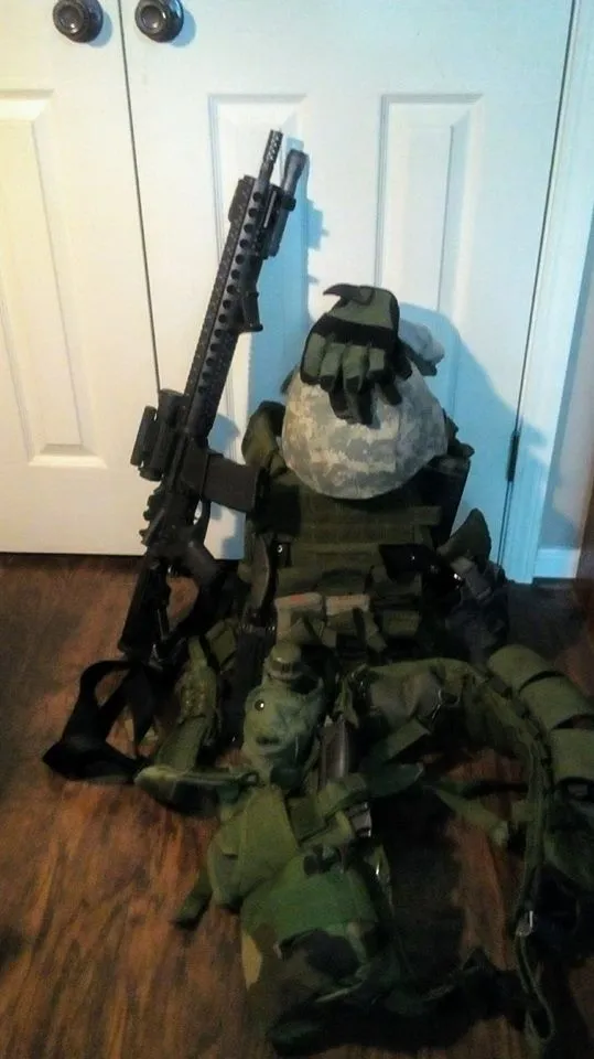 to my Ruger American 45ACP pistol on the left attached to my battle belt