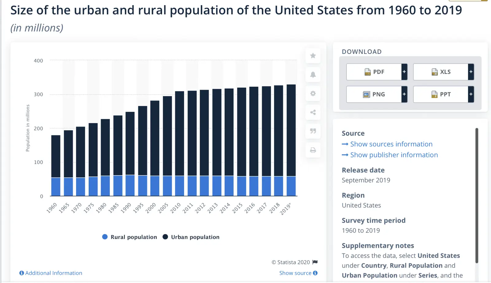 In 2023, there were approximately 55.94 million people living in rural areas in the United States, while about 278.98 million people were living in urban areas.
