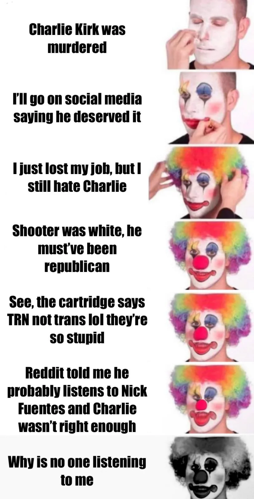 Don't nobody on the right give a shit about Kirk. The only thing they care about is their narrative of butt hurt.