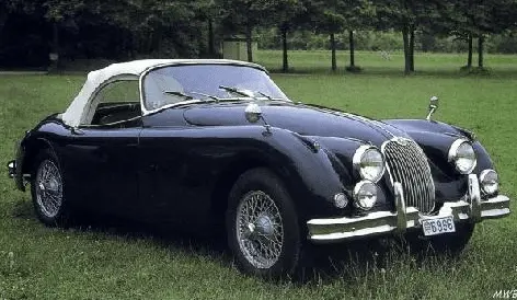 The 1957 Jaguar XK 150 Drophead Coupé with the top up: