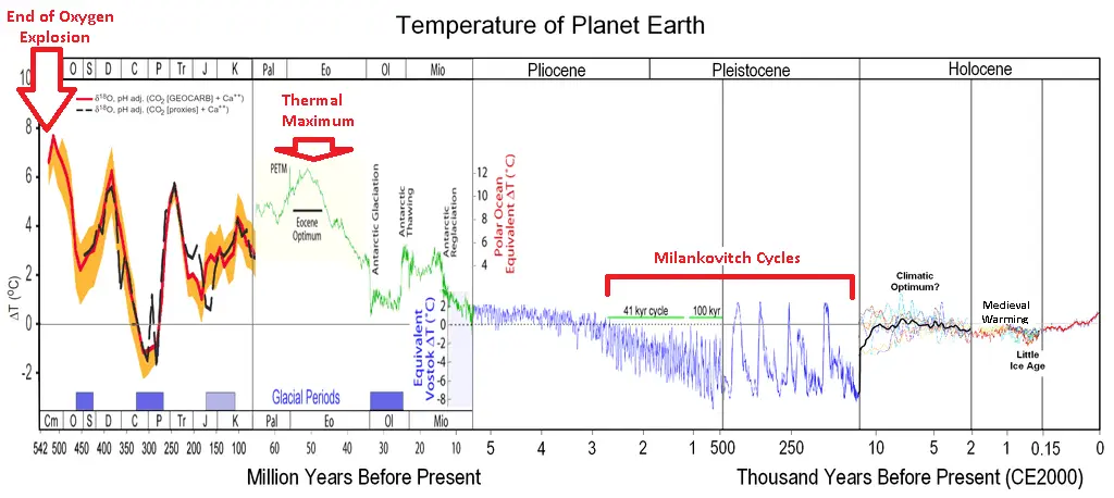 That is too short of a time frame. Millions of years is more appropriate. The global maximum occurred 55 million years ago - far far hotter than today and no humans to blame it on.
