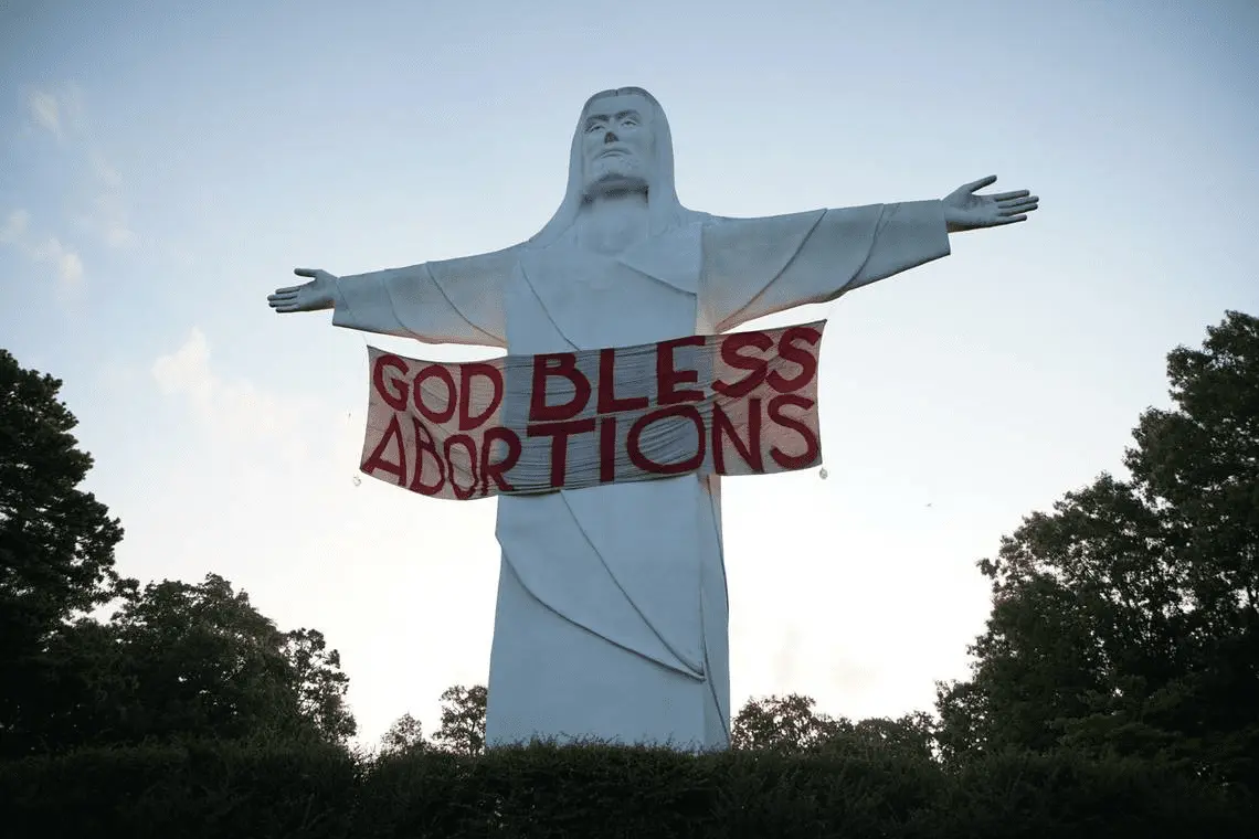 Activists Hang ‘God Bless Abortions’ Banner On Jesus Christ Monument