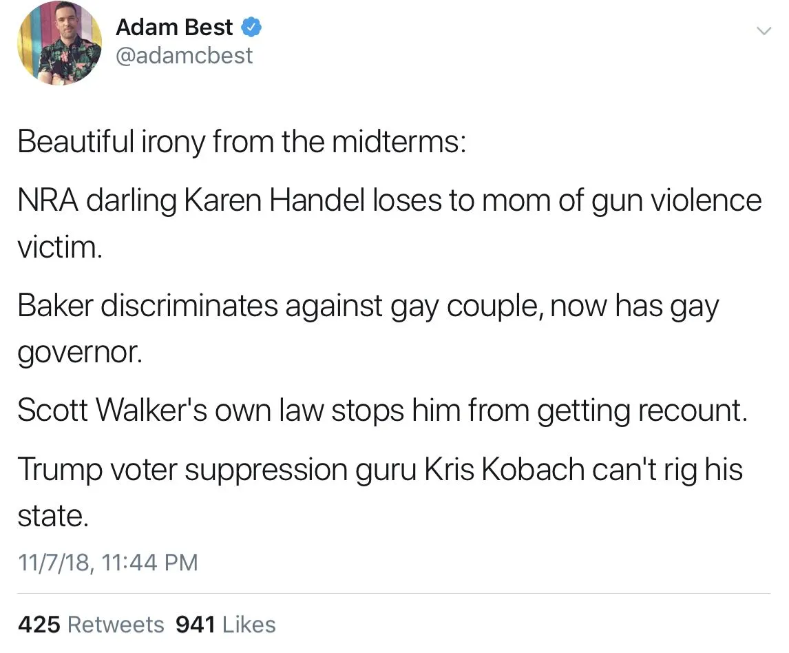 What a great night! Some of the biggest Republican cretins were defeated, including three from House leadership. Plus this: