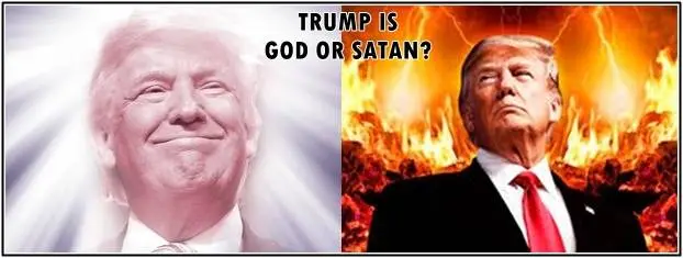 Well the article goes into the people's perception that Trump is God (Trumper's view) or that Trump is the Devil (anti-trumpers view). This is certainly crazy and against knowledge and beliefs (there is no God and no Satan) that are centered in reality...........but then again, it certainly fits in perfectly into what most people have been saying about Trump............he is God............he is Satan!